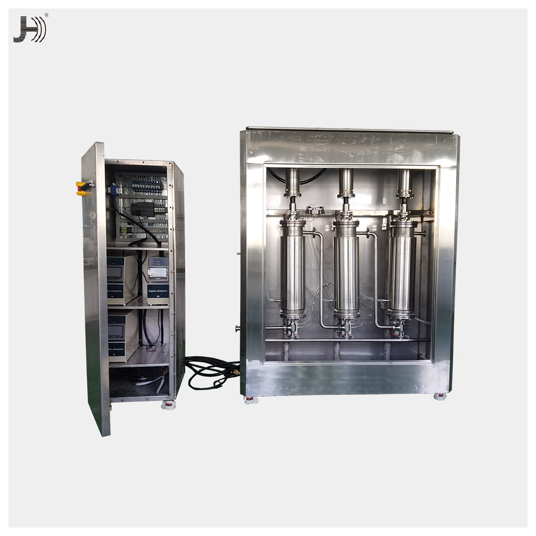 油水乳化大型连续式超声波生物柴油设备是指在超声能量作用下,使两种(或两种以上)不相溶液体混合均匀形成分散物系,其中一种液体均匀分布在另一液体之中而形成乳状液的工艺过程。