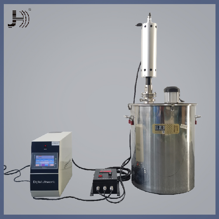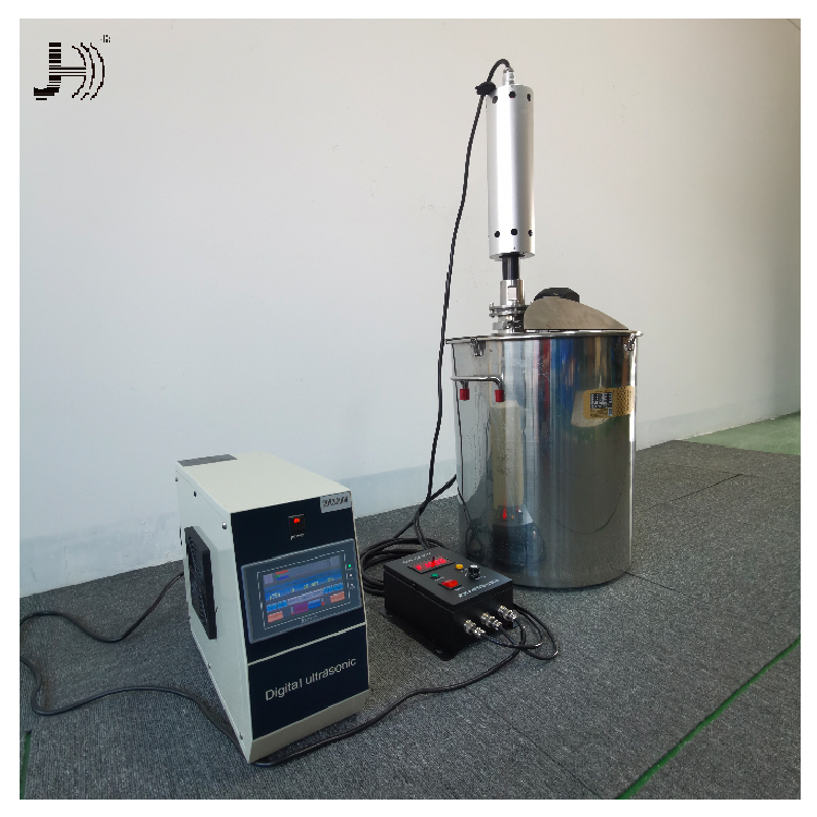 工业大功率超声波搅拌器适用于各种溶液,包括高粘度溶液。常规功率为1.0kW至3.0kW。颗粒可以分散到纳米级。工业应用通常将不同的液体或固体与液体混合以配制各种产品。如:液体饮料/药品,油漆,涂料,洗涤剂等。为了更好地将各种物质混合到溶液中,有必要将最初附聚的物质分散到一个分散体中。超声空化以每秒20000次的振动在液体中形成无数个高压区和低压区,这些高低压区不断相互碰撞形成强大的微击波,产生强大的剪切力,促使聚合物解聚。