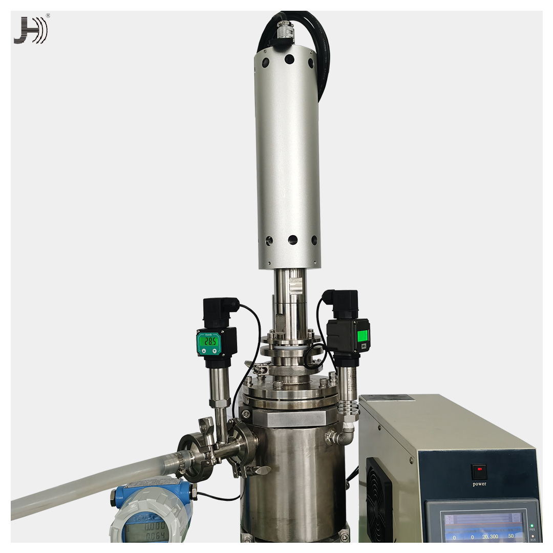 聚能型超声波搅拌机适用于各种溶液,包括高粘度溶液。常规功率为1.0kW至3.0kW。颗粒可以分散到纳米级。工业应用通常将不同的液体或固体与液体混合以配制各种产品。如:液体饮料/药品,油漆,涂料,洗涤剂等。为了更好地将各种物质混合到溶液中,有必要将最初附聚的物质分散到一个分散体中。超声空化以每秒20000次的振动在液体中形成无数个高压区和低压区,这些高低压区不断相互碰撞形成强大的微击波,产生强大的剪切力,促使聚合物解聚。