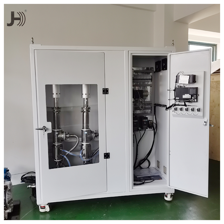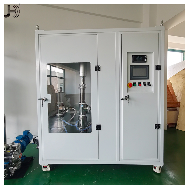 9000W循环式多级超声波分散机适用于各种溶液,包括高粘度溶液。常规功率为1.0kW至3.0kW。颗粒可以分散到纳米级。工业应用通常将不同的液体或固体与液体混合以配制各种产品。如:液体饮料/药品,油漆,涂料,洗涤剂等。为了更好地将各种物质混合到溶液中,有必要将最初附聚的物质分散到一个分散体中。超声空化以每秒20000次的振动在液体中形成无数个高压区和低压区,这些高低压区不断相互碰撞形成强大的微击波,产生强大的剪切力,促使聚合物解聚。