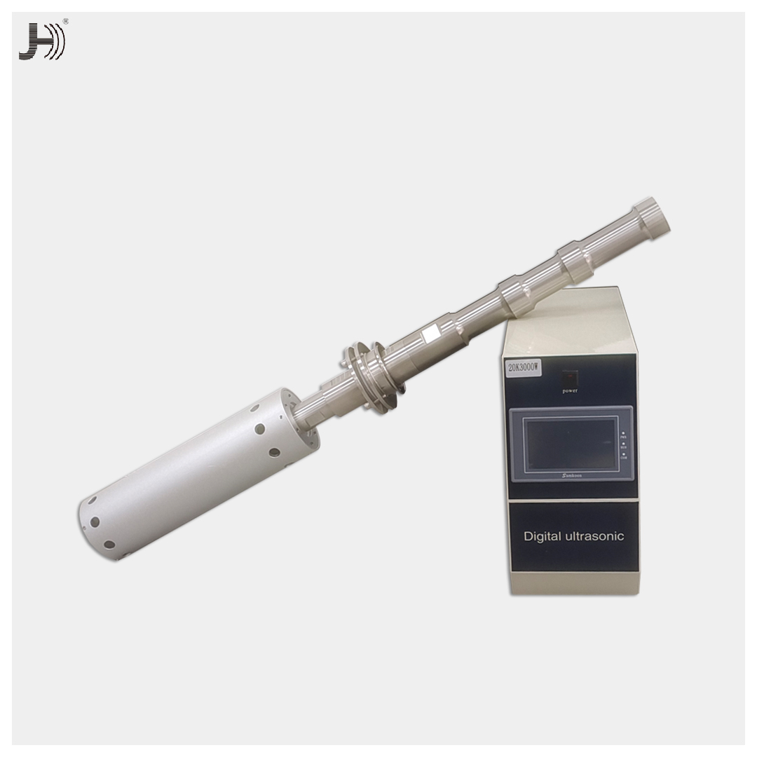 插入式大功率超声波搅拌棒设备适用于各种溶液,包括高粘度溶液。常规功率为1.0kW至3.0kW。颗粒可以分散到纳米级。工业应用通常将不同的液体或固体与液体混合以配制各种产品。如:液体饮料/药品,油漆,涂料,洗涤剂等。为了更好地将各种物质混合到溶液中,有必要将最初附聚的物质分散到一个分散体中。超声空化以每秒20000次的振动在液体中形成无数个高压区和低压区,这些高低压区不断相互碰撞形成强大的微击波,产生强大的剪切力,促使聚合物解聚。