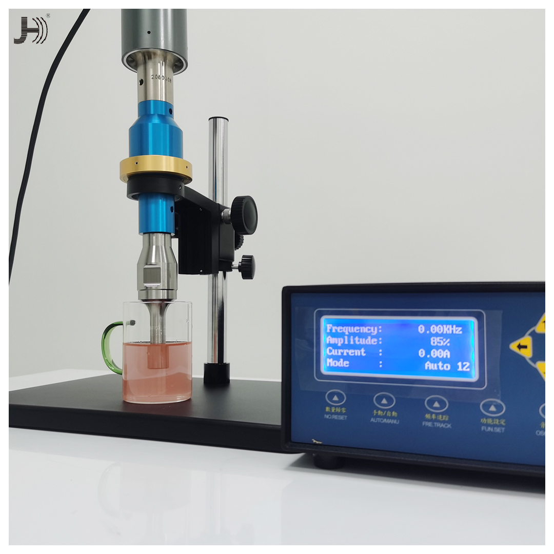 超声乳化分散器适用于各种溶液,包括高粘度溶液。常规功率为0.5kW至1.5kW。颗粒可以分散到纳米级。工业应用通常将不同的液体或固体与液体混合以配制各种产品。如:液体饮料/药品,油漆,涂料,洗涤剂等。为了更好地将各种物质混合到溶液中,有必要将最初附聚的物质分散到一个分散体中。超声空化以每秒20000次的振动在液体中形成无数个高压区和低压区,这些高低压区不断相互碰撞形成强大的微击波,产生强大的剪切力,促使聚合物解聚。