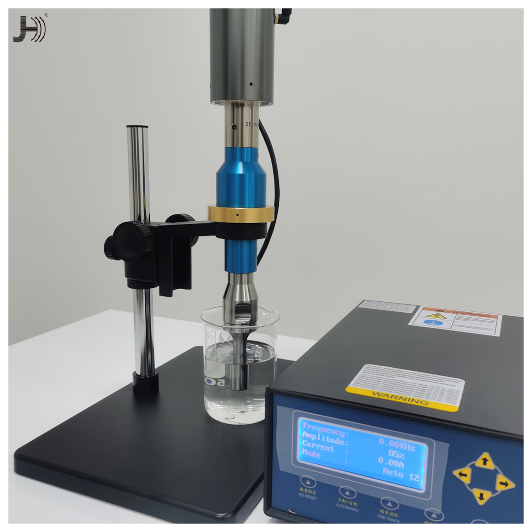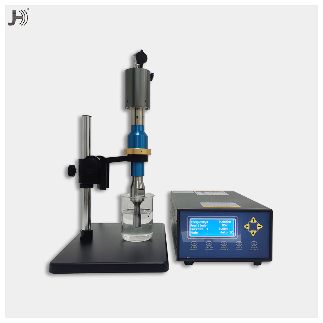 超声波小型搅拌机适用于各种溶液,包括高粘度溶液。常规功率为1.0kW至3.0kW。颗粒可以分散到纳米级。工业应用通常将不同的液体或固体与液体混合以配制各种产品。如:液体饮料/药品,油漆,涂料,洗涤剂等。为了更好地将各种物质混合到溶液中,有必要将最初附聚的物质分散到一个分散体中。超声空化以每秒20000次的振动在液体中形成无数个高压区和低压区,这些高低压区不断相互碰撞形成强大的微击波,产生强大的剪切力,促使聚合物解聚。