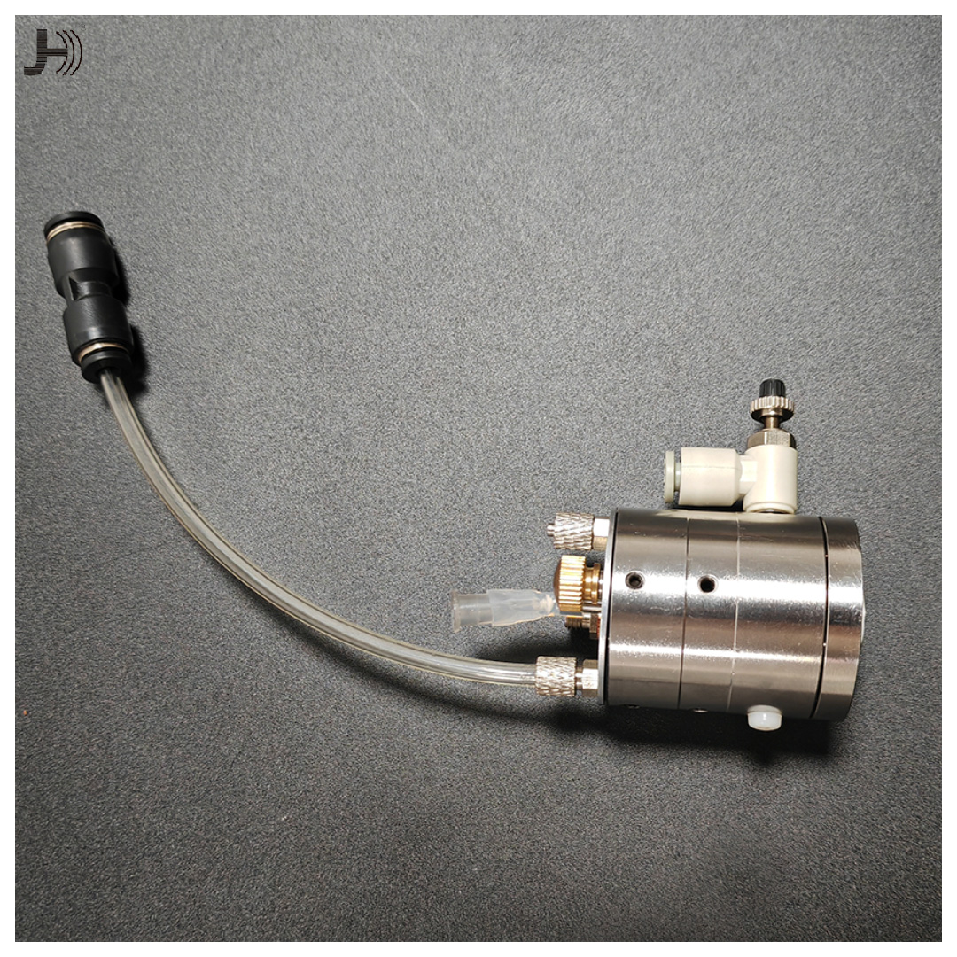 超声喷涂机实验室是利用超声波的能量作用将水或液体打散,形成几微米到100多 微米的微小颗粒,实现对空气加湿、液体造粒、混合、促进化学反应、喷涂、金 属熔体制粉等目的的一种方式。