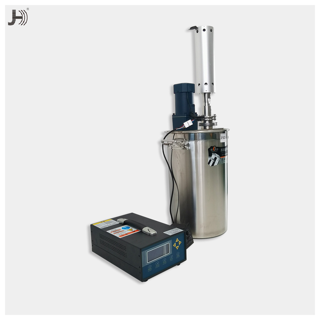 实验室用超声波搅拌机适用于各种溶液,包括高粘度溶液。常规功率为1.0kW至3.0kW。颗粒可以分散到纳米级。工业应用通常将不同的液体或固体与液体混合以配制各种产品。如:液体饮料/药品,油漆,涂料,洗涤剂等。为了更好地将各种物质混合到溶液中,有必要将最初附聚的物质分散到一个分散体中。超声空化以每秒20000次的振动在液体中形成无数个高压区和低压区,这些高低压区不断相互碰撞形成强大的微击波,产生强大的剪切力,促使聚合物解聚。