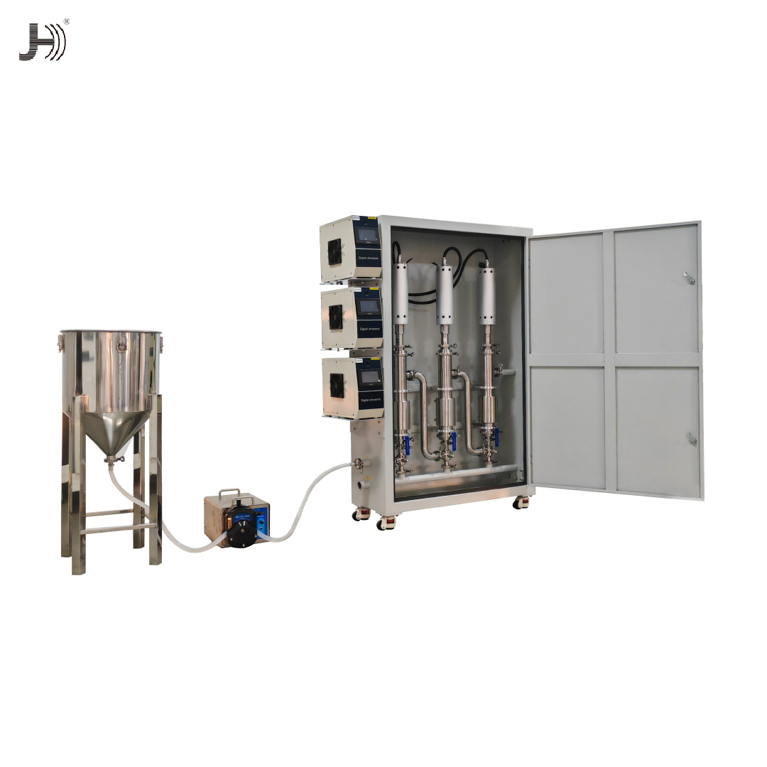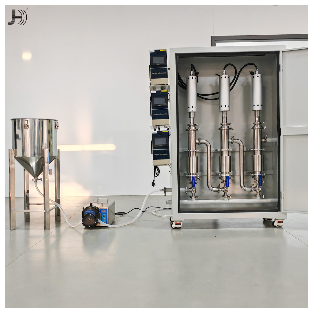 超声波柜式均质设备可以使液-液和固-液溶液更好地混合。 超声波振动会产生数百万个微小气泡,这些气泡立即形成并坍塌,形成强大的冲击波,从而使细胞或颗粒破裂。