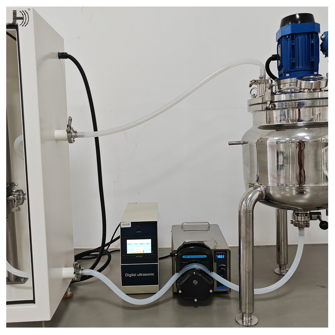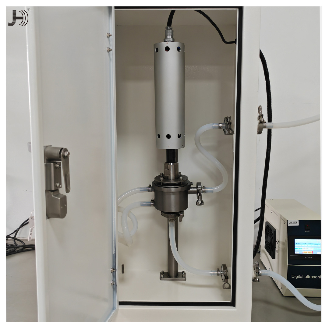 超声波分散是指以液体为媒介,通过超声波在液体中的“空化”作用,将液体中的颗粒进行细化和解团聚的过程。 将固体颗粒混入液体中,最常见的现象是颗粒之间因各种物理和化学性质彼此吸附团聚,这一现象在粘度越高的物料中表现的越为明显。超声波分散设备以每秒20000次的高频振动产生强大的剪切力,克服颗粒之间的吸引力使其解团聚,同时进一步细化单个颗粒,使得颗粒分布更均匀。